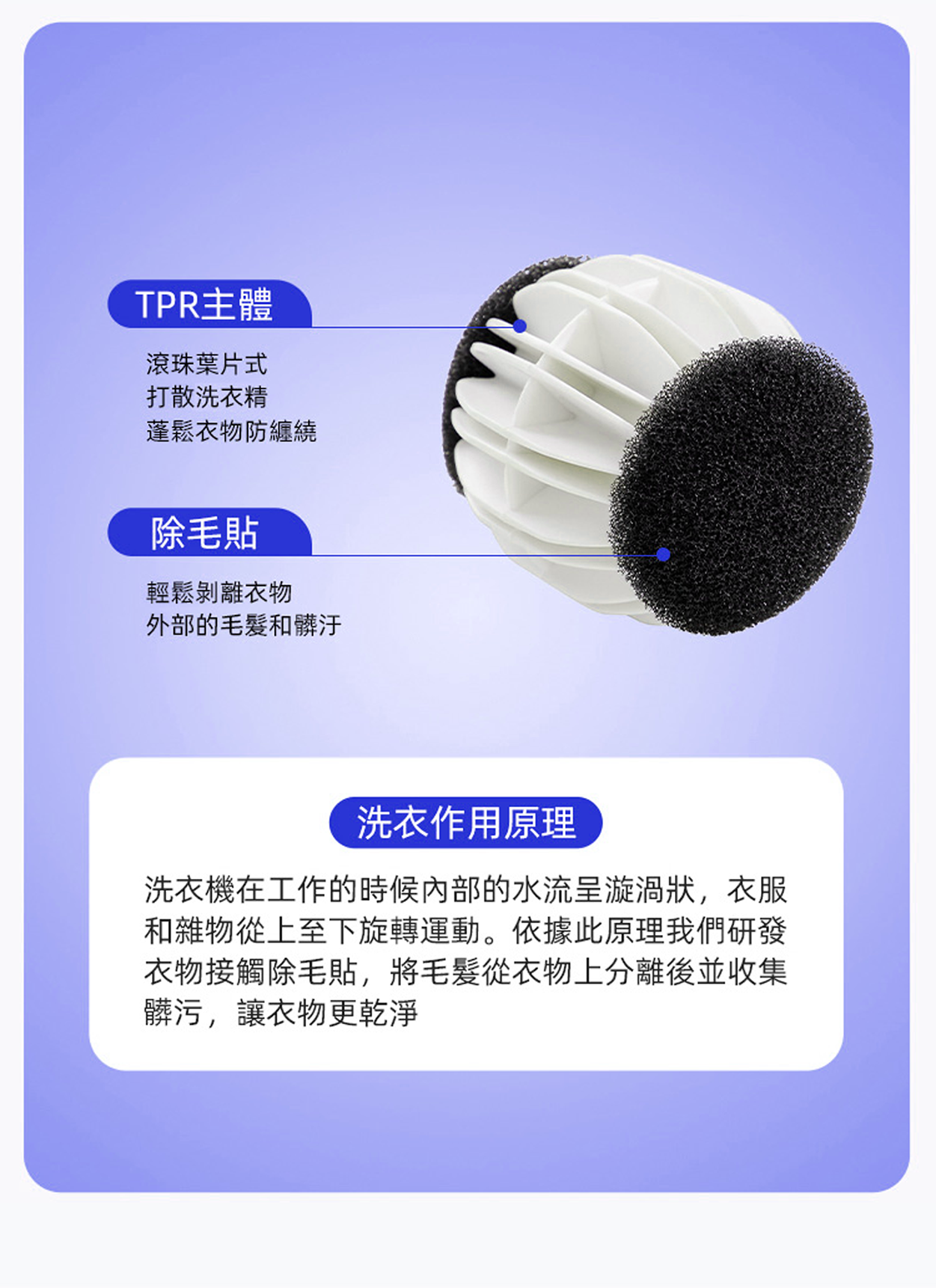 特點:衣物清潔時、防纏繞、防吸附毛髮