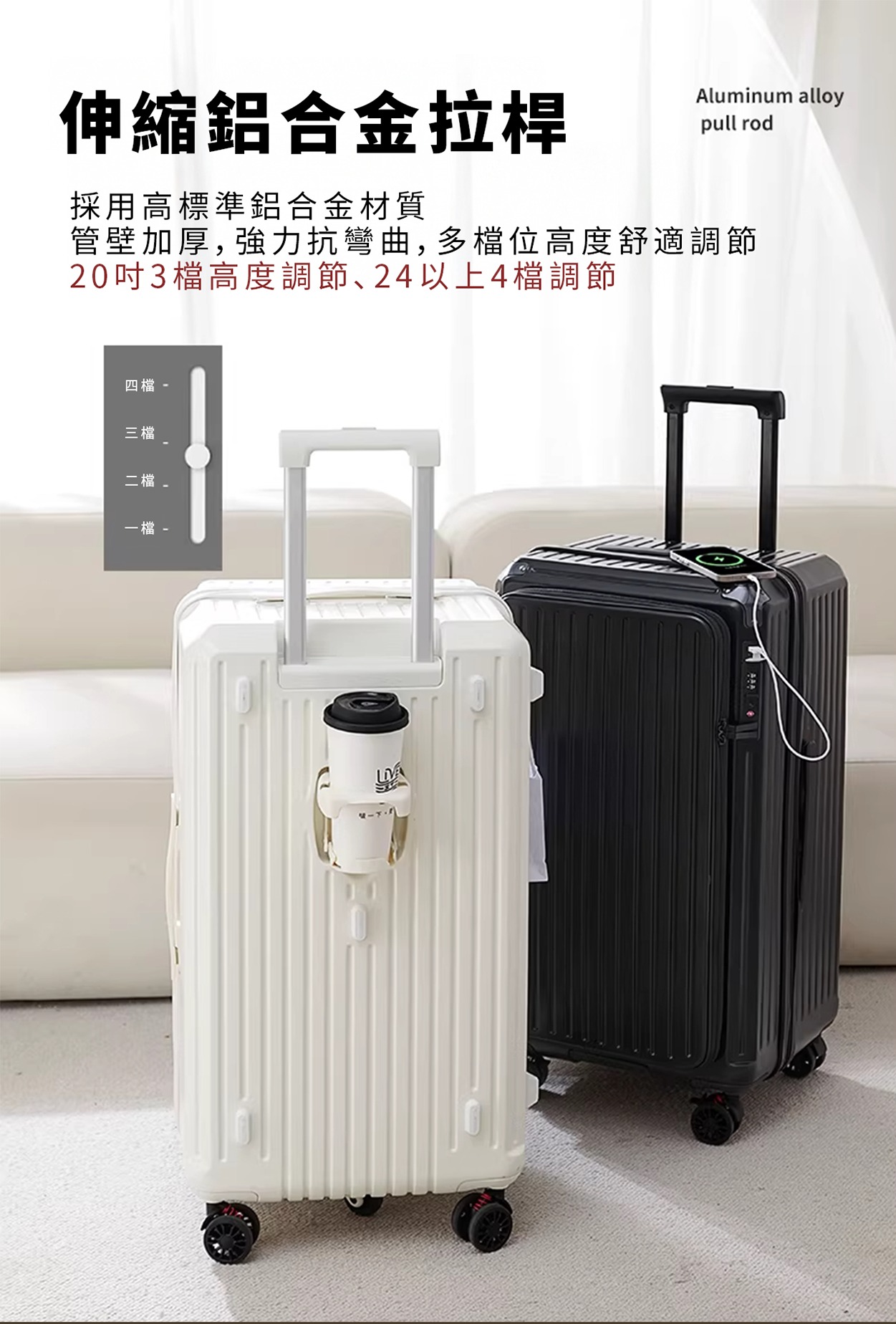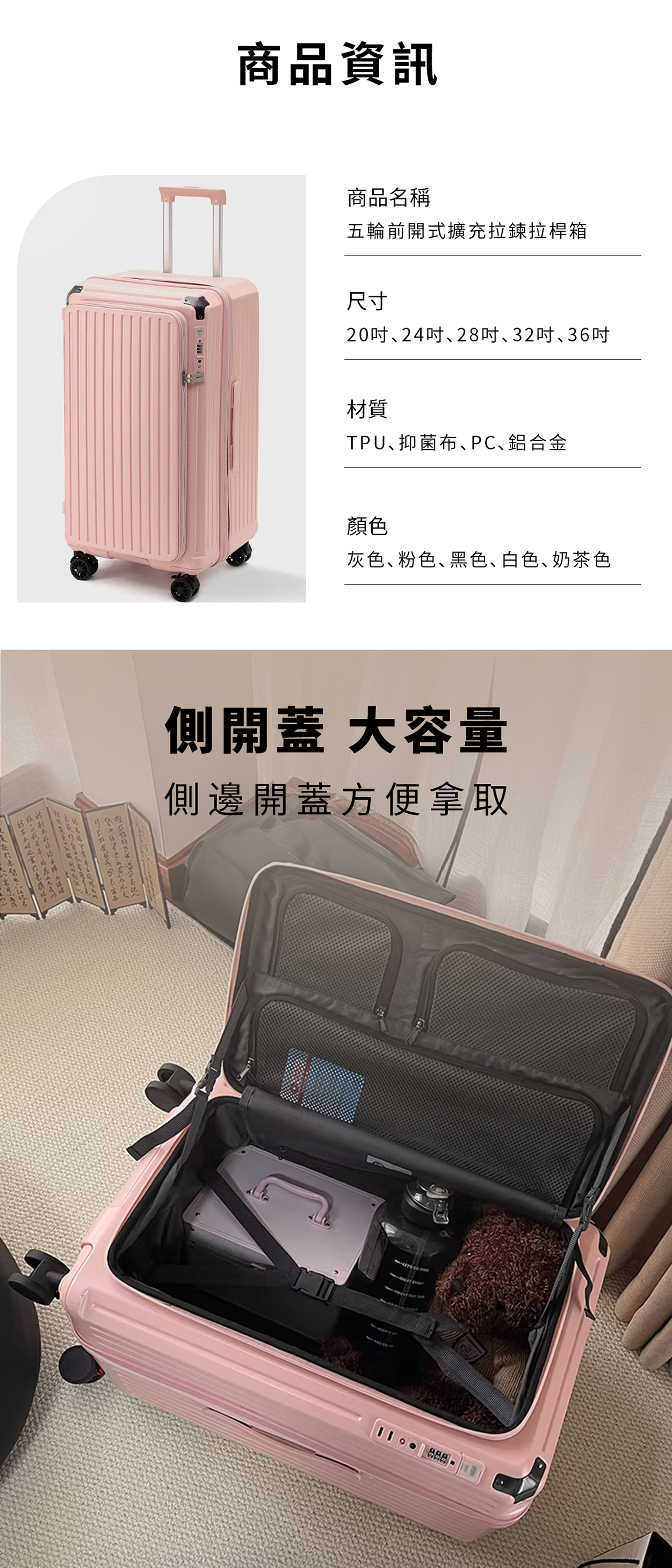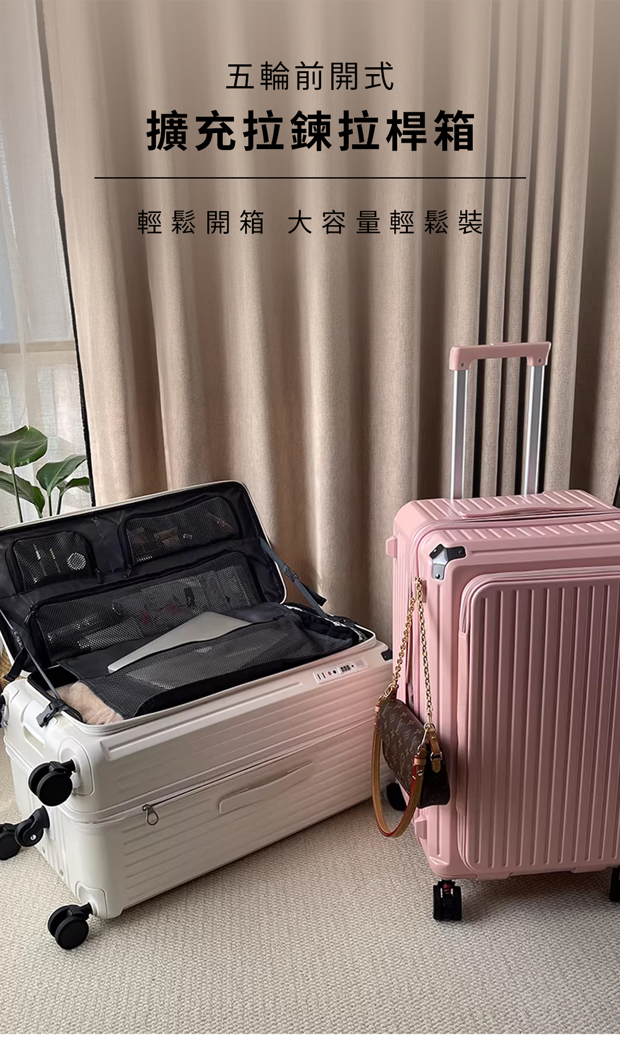 【生活選物】五輪前開式擴充拉鍊拉桿箱__黑色