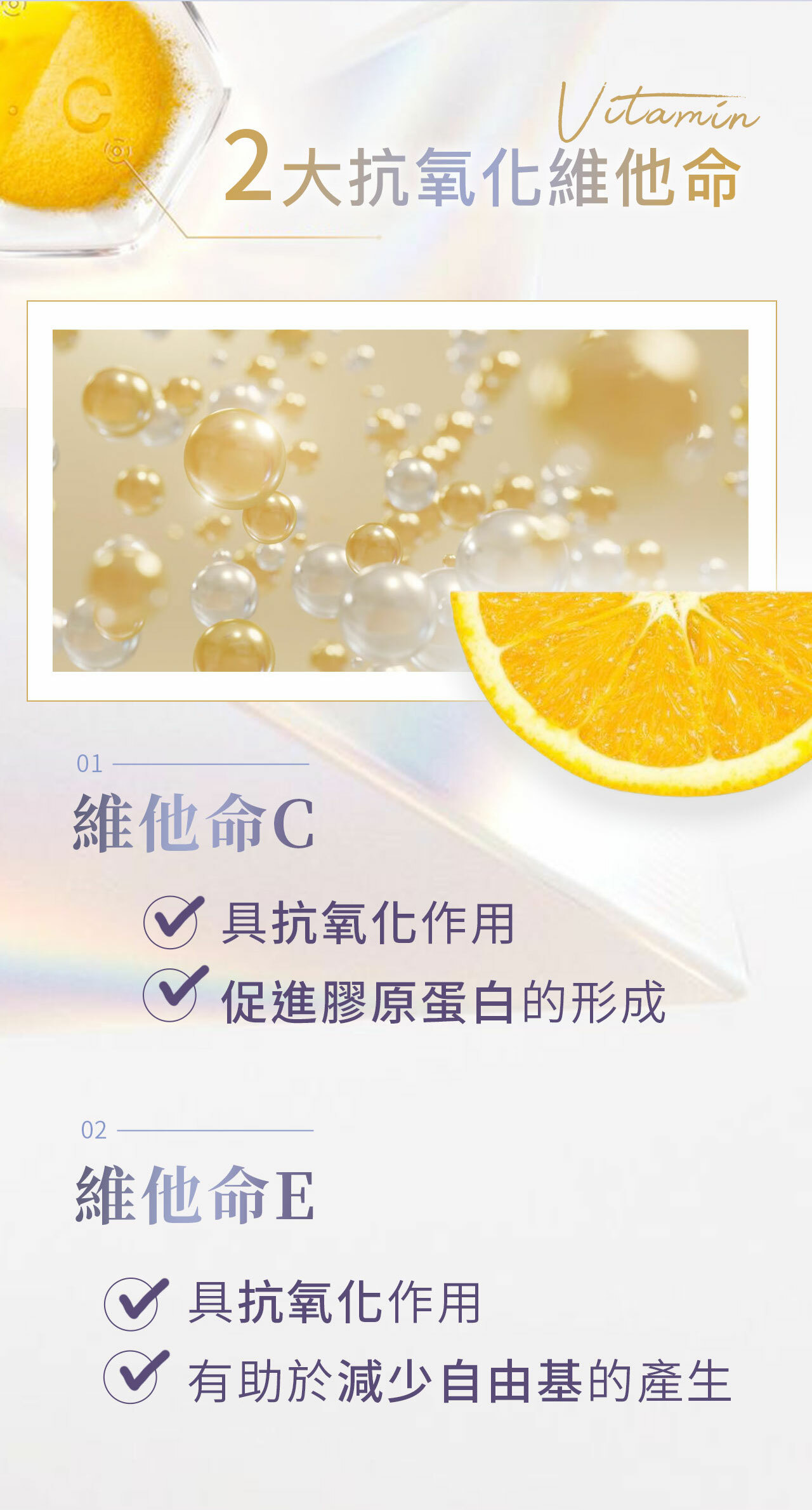 維生素C 具抗氧化作用,促進膠原蛋白形成
