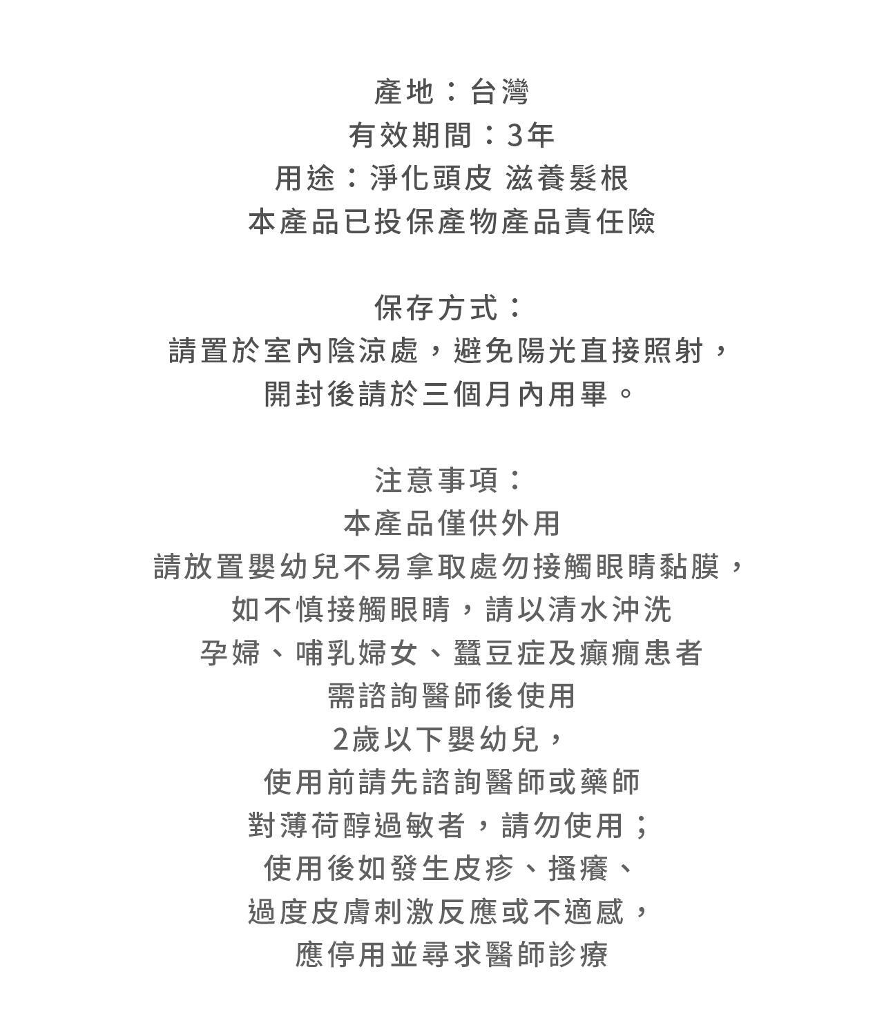 每週使用1-2次,洗髮前取適量的按摩油塗抹於頭皮,按摩3-5分鐘,再去洗頭