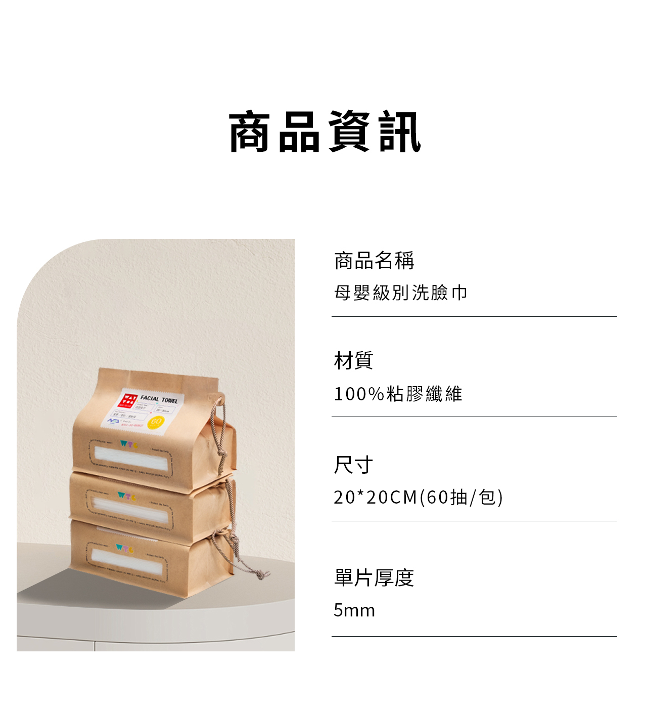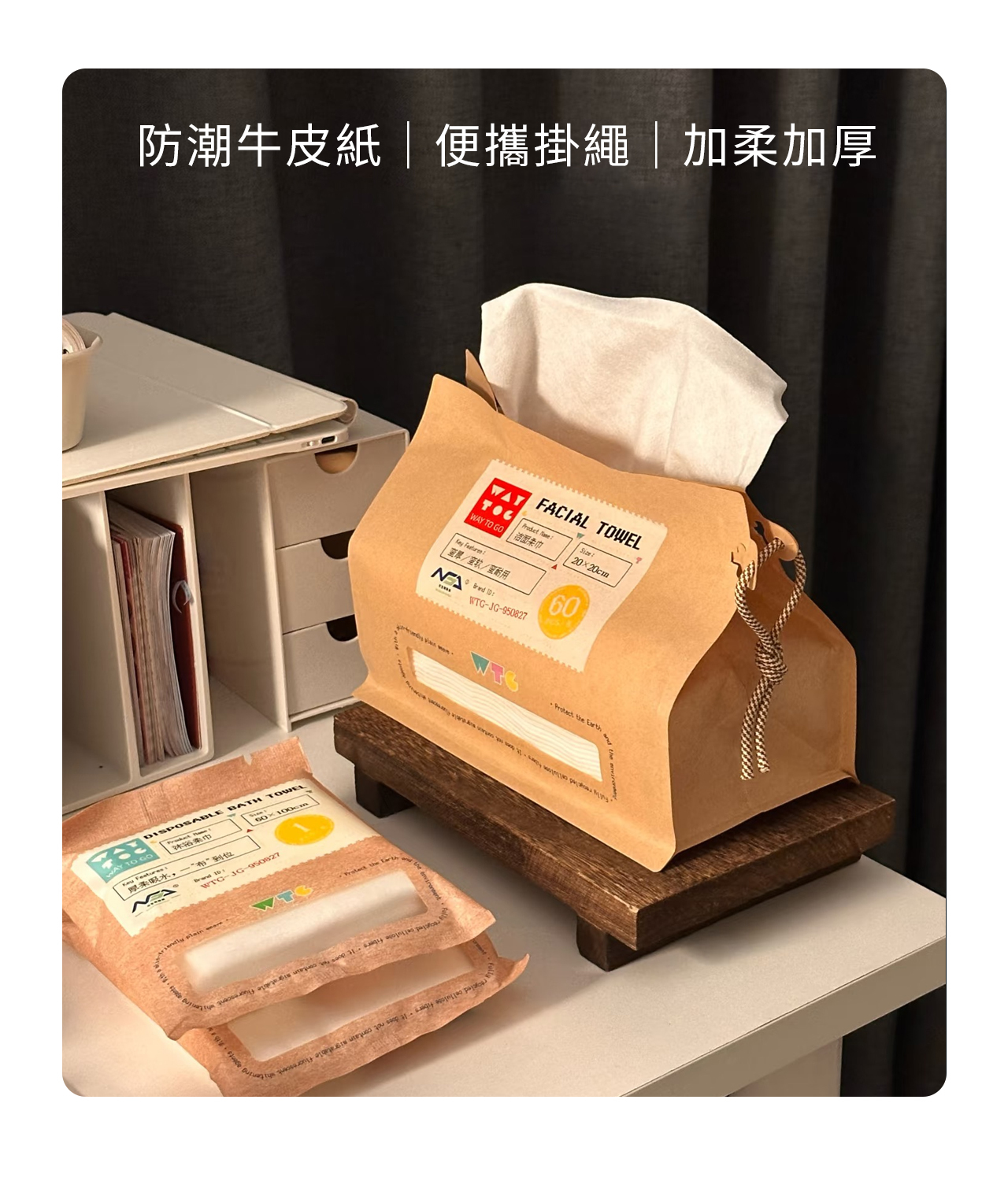 牛皮紙外包裝防水設計,柔軟親膚材質、吸水快速,