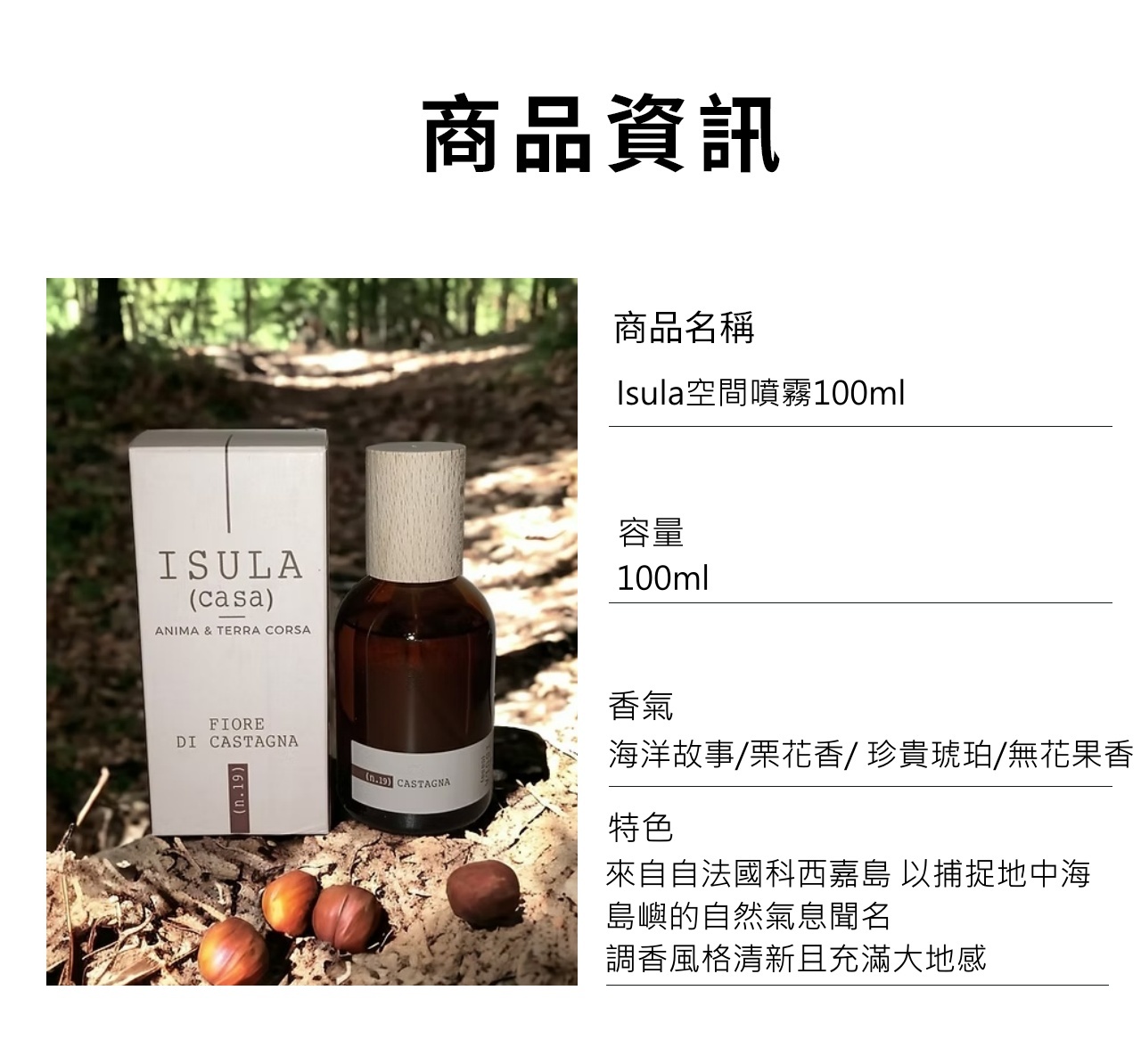 這是 Isula 最具代表性的香氣。科西嘉島以栗子樹林聞名,這款香味完美還原了栗子花的甜美與溫暖。