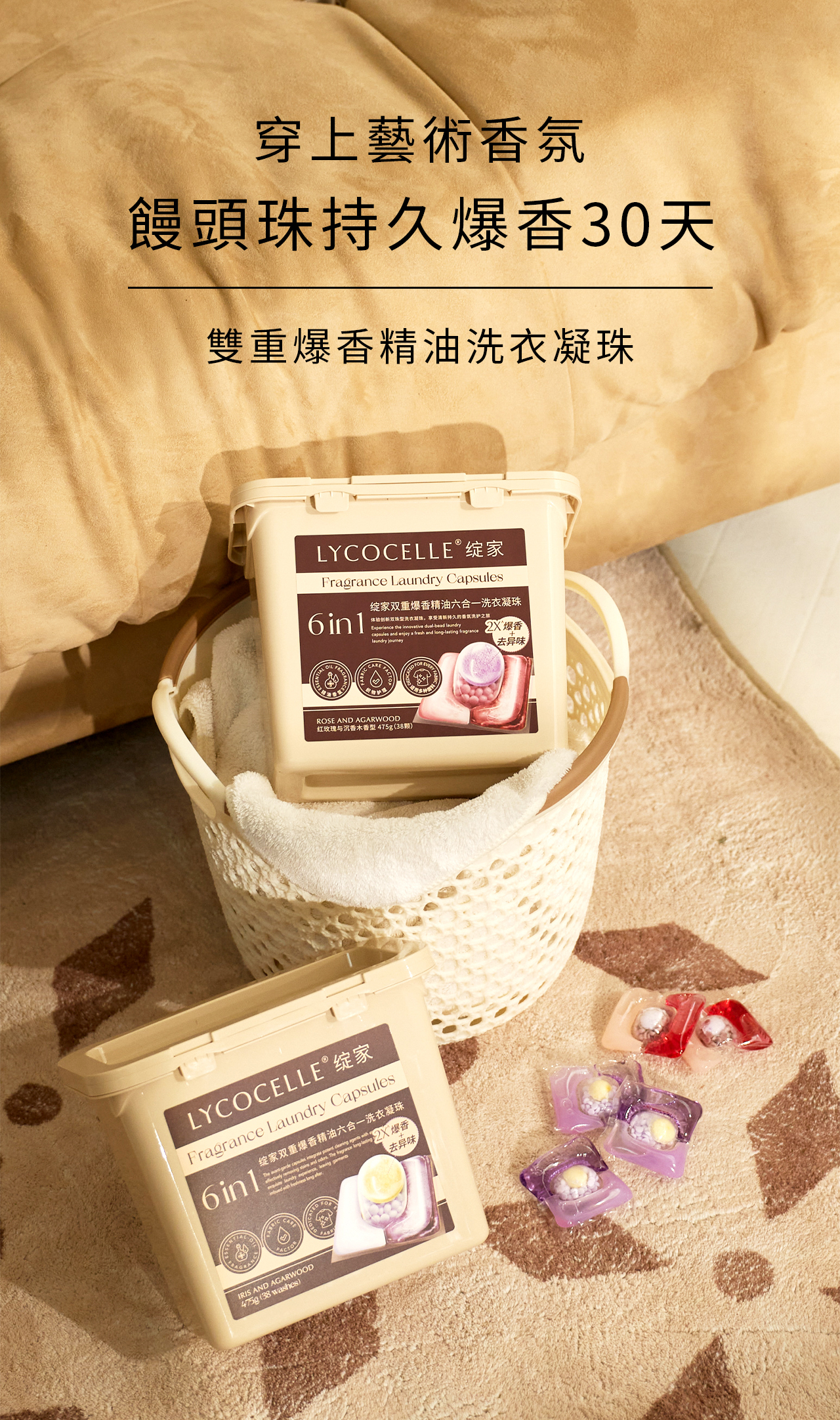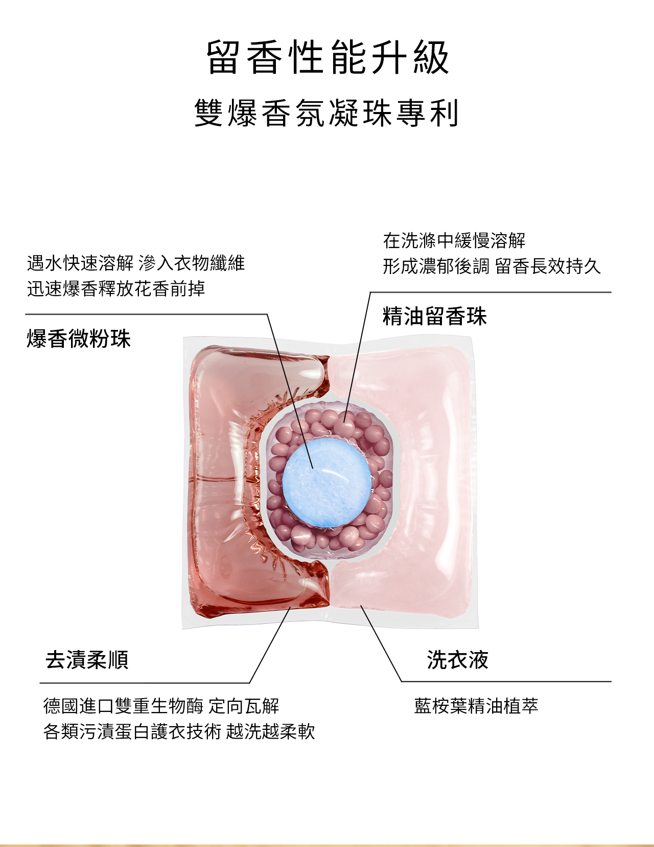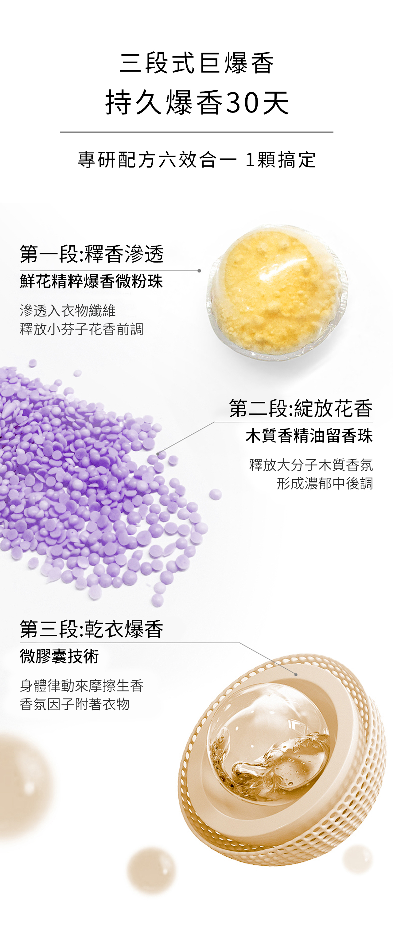 一顆=香水級留香珠+去漬濃縮洗衣液+柔順劑+植萃抑菌液