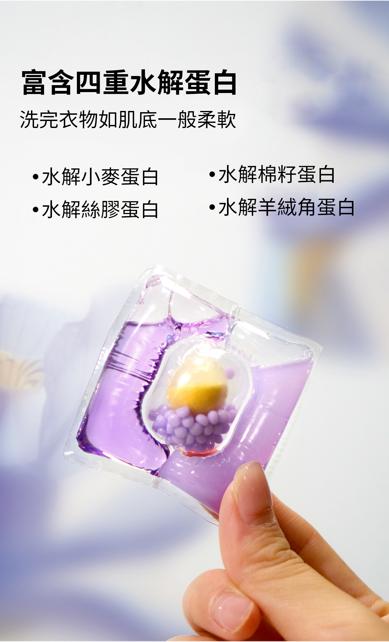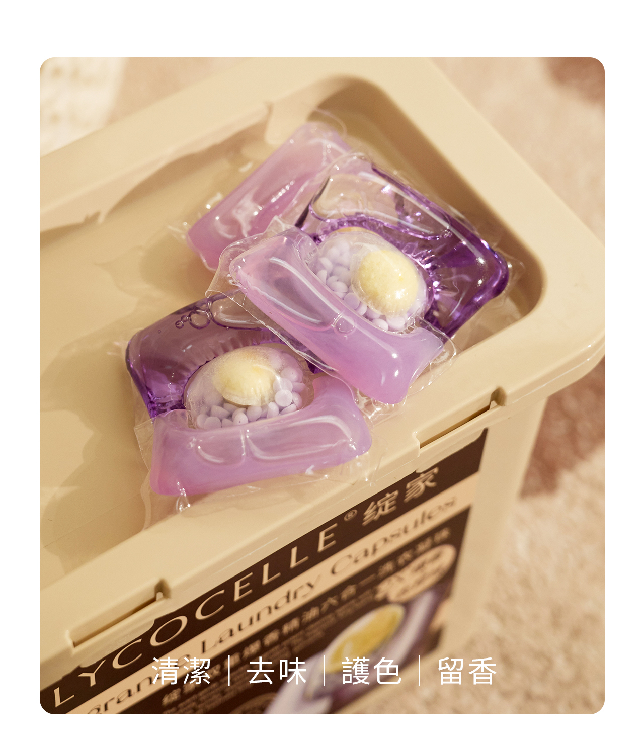 綻家洗衣凝珠,遇水即溶,輕鬆享受潔淨體驗,告別繁瑣的洗衣流程。