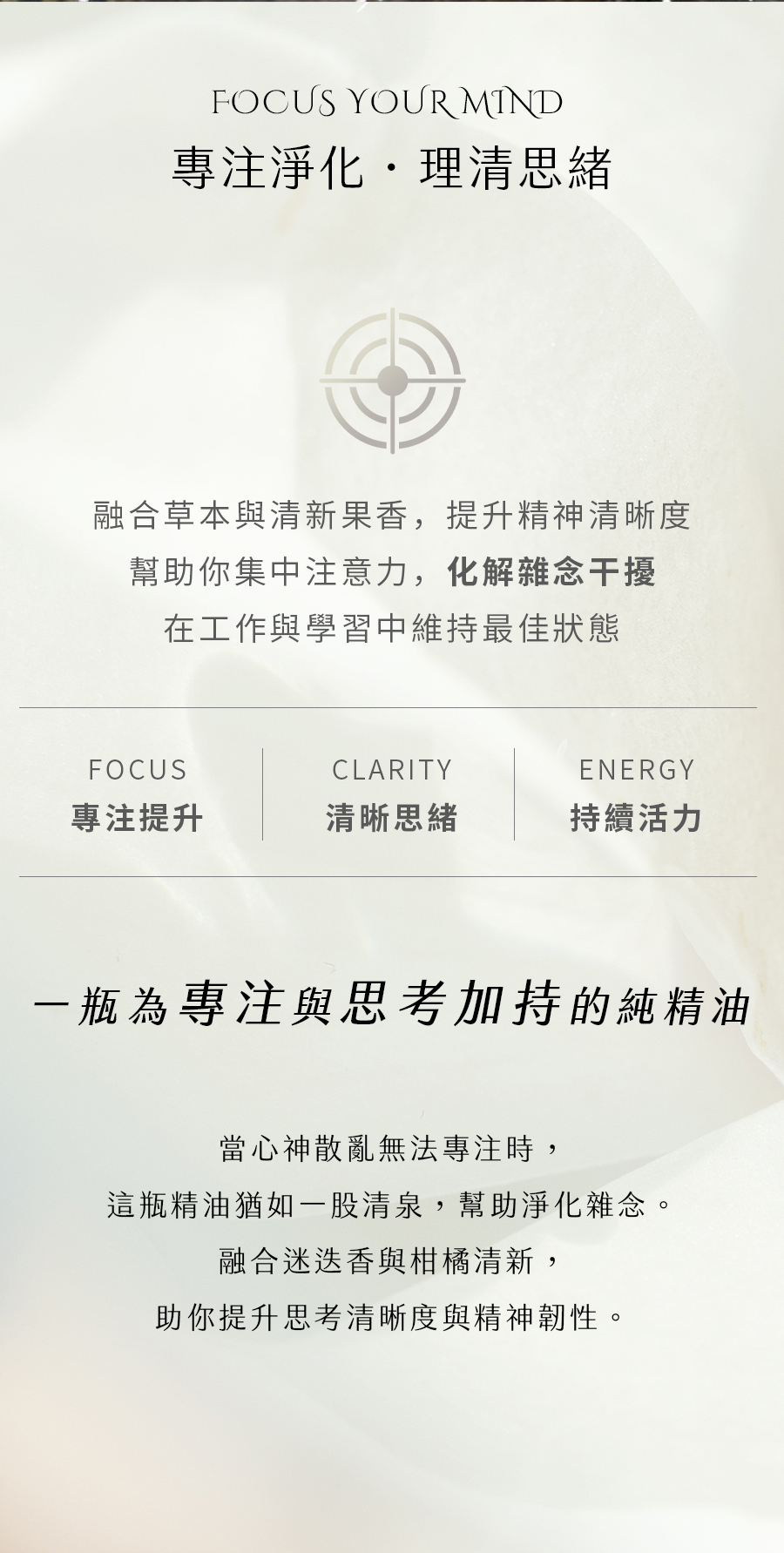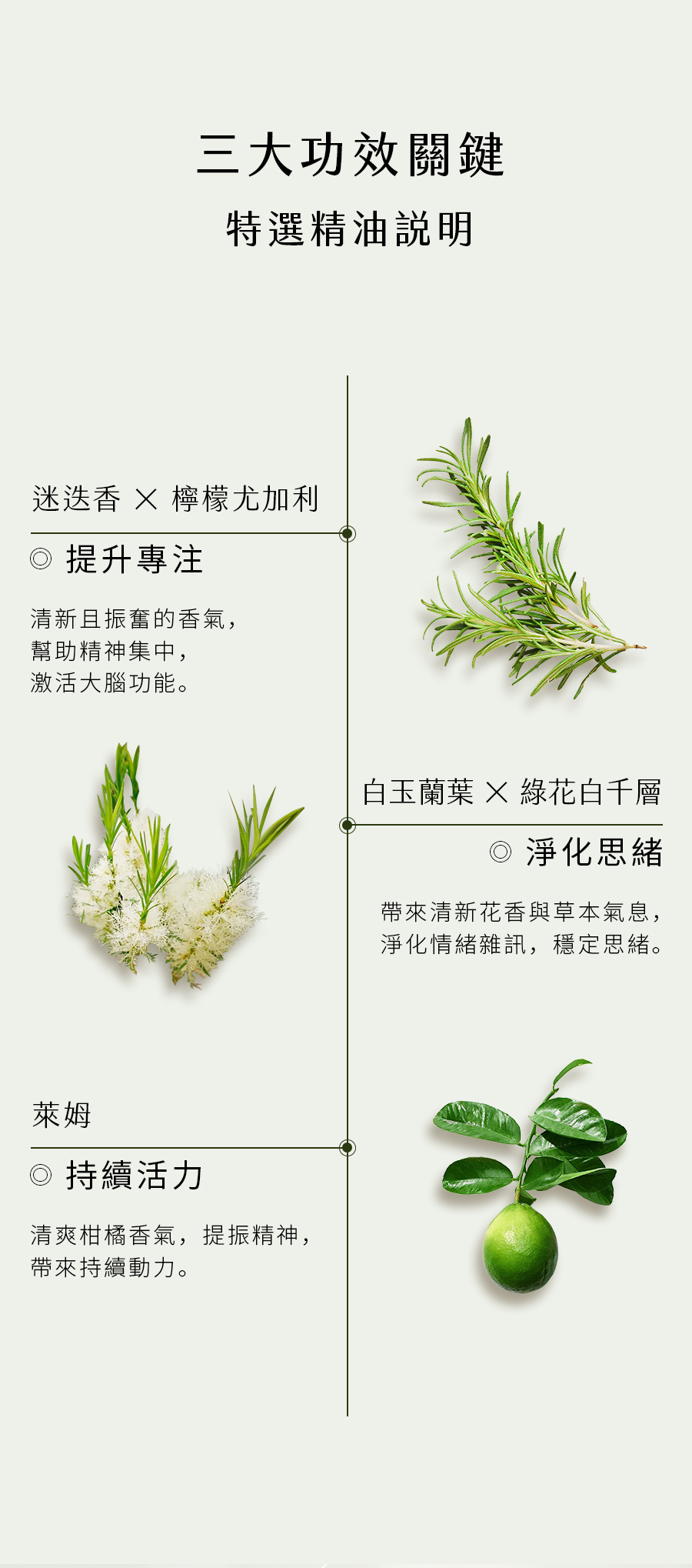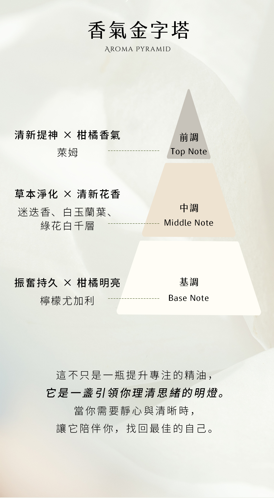清涼草本的醒腦、木質的穩定、柑橘的聚焦,