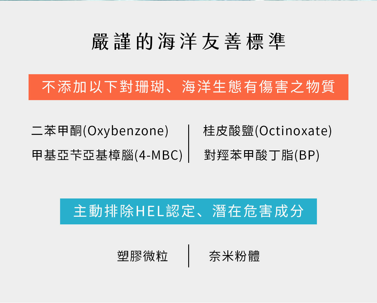• 拒絕對珊瑚有害成分,守護肌膚也要保護海洋!