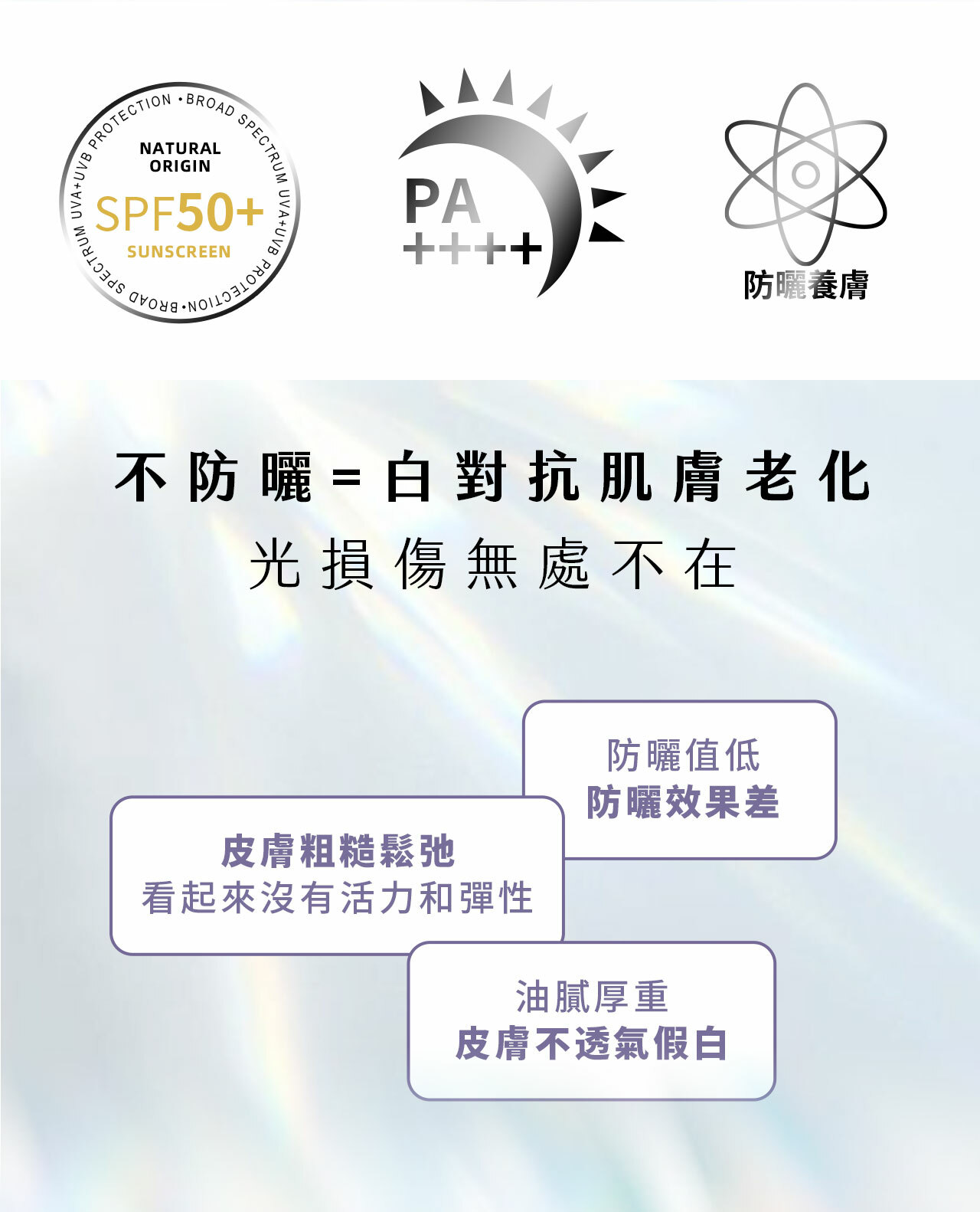 • 防曬係數SPF 50+/PA++++,完美防禦紫外線傷害!