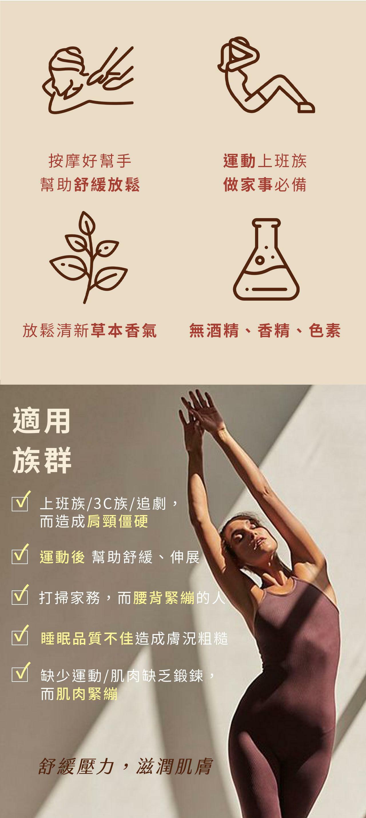 2.運動前丶中丶後使用,可以幫助舒緩放鬆身體。