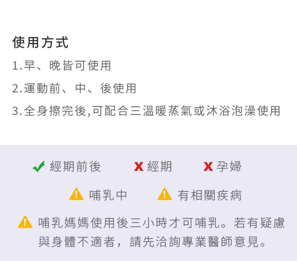 3.全身擦完後,可配合三溫暖蒸氣或是沐浴泡澡使用