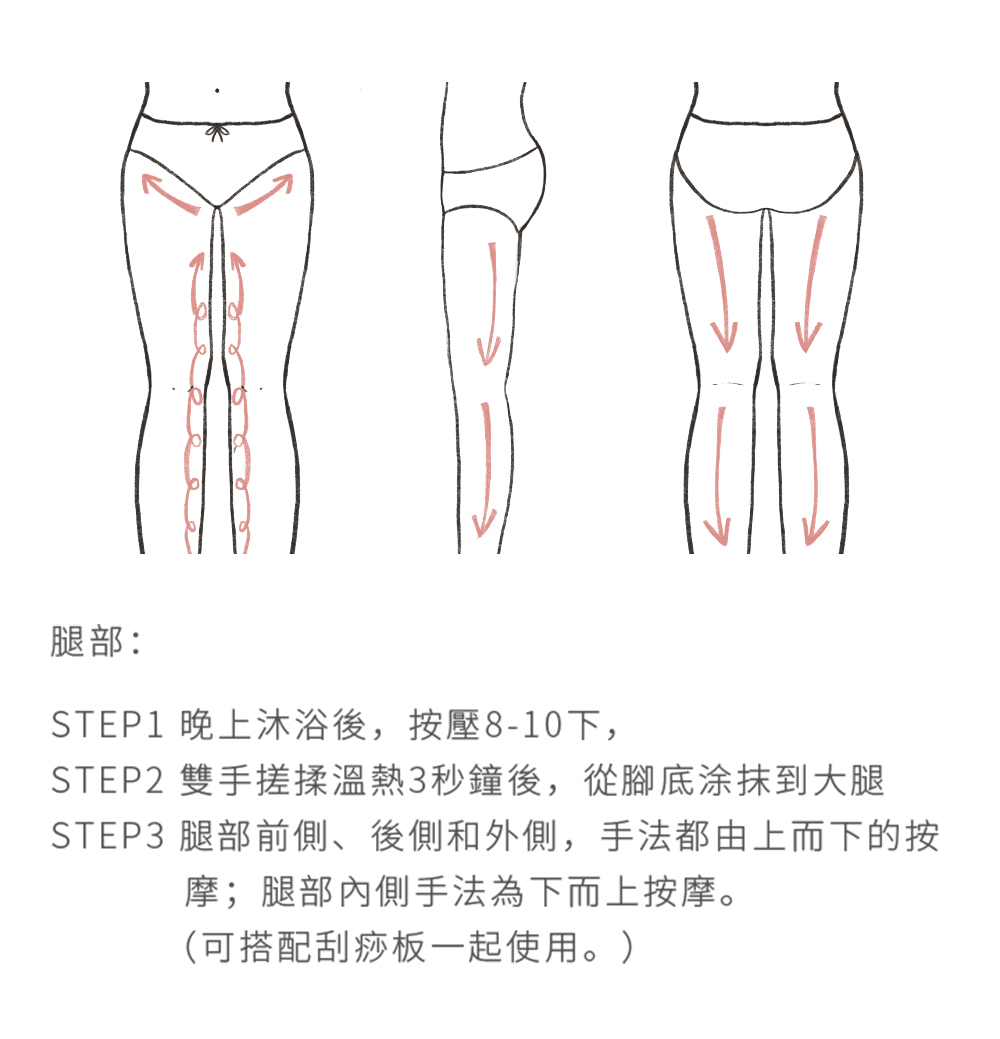緊實肌膚、美化腿部、腹部、手臂肌膚