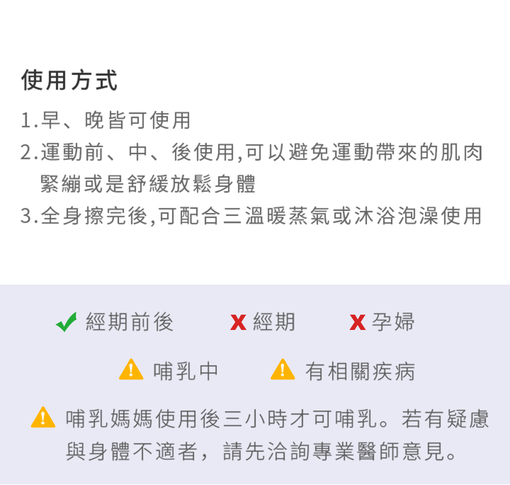 2.運動前丶中丶後使用,可以幫助舒緩放鬆身體。